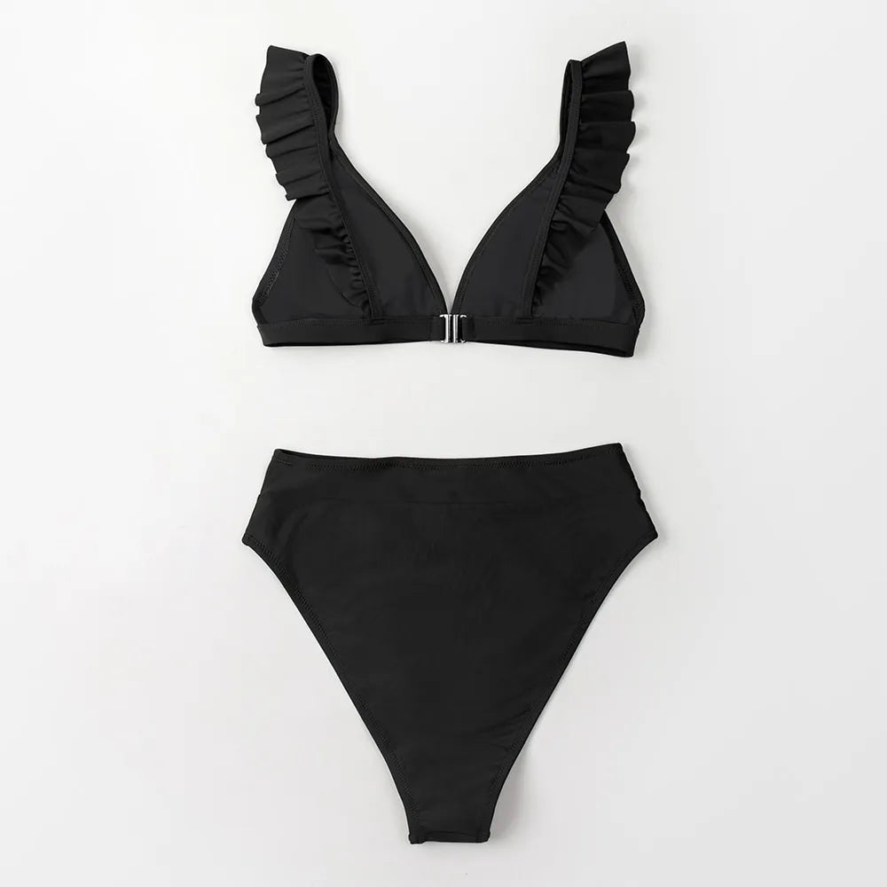 - Top de alcinhas, com babados que percorrem as alças e busto.